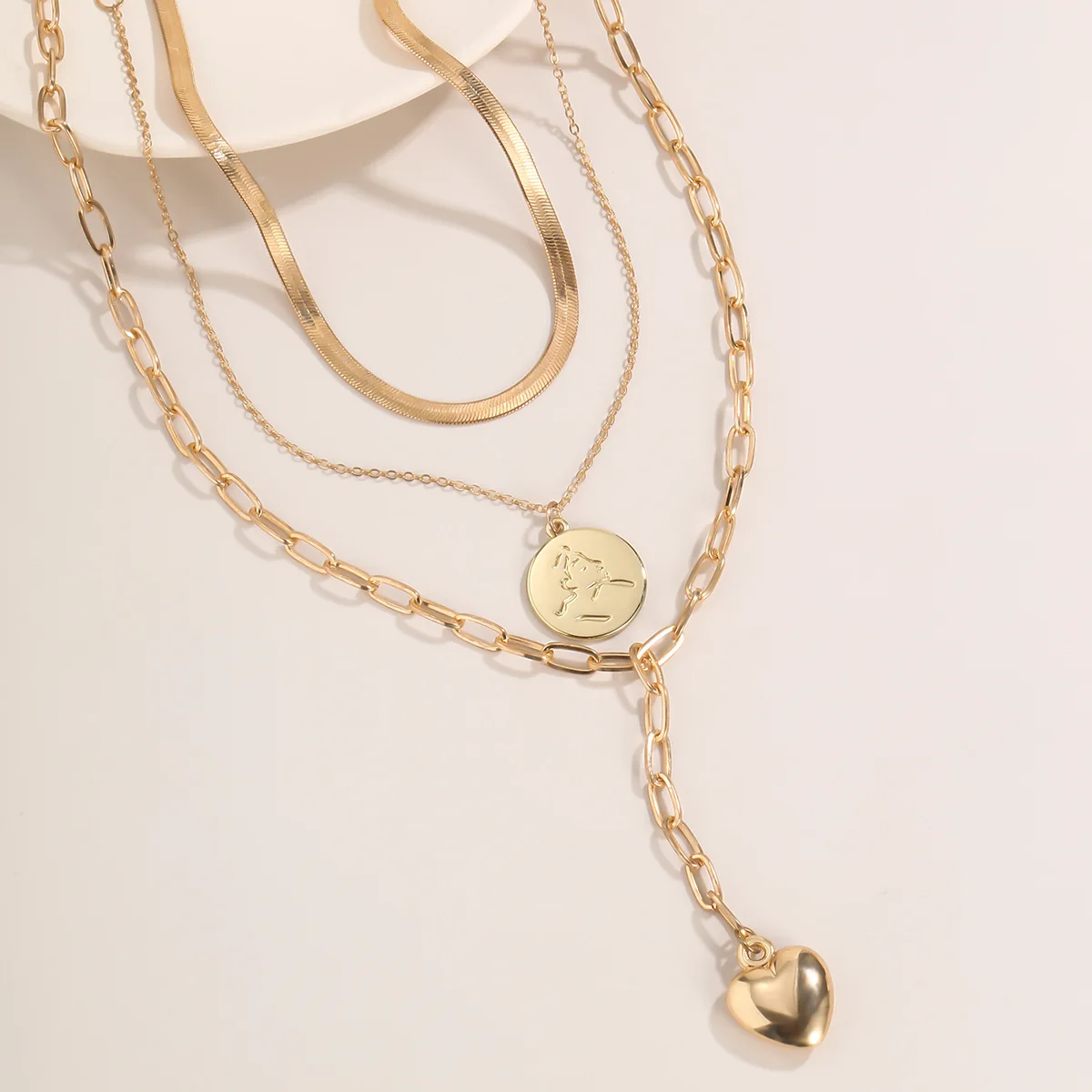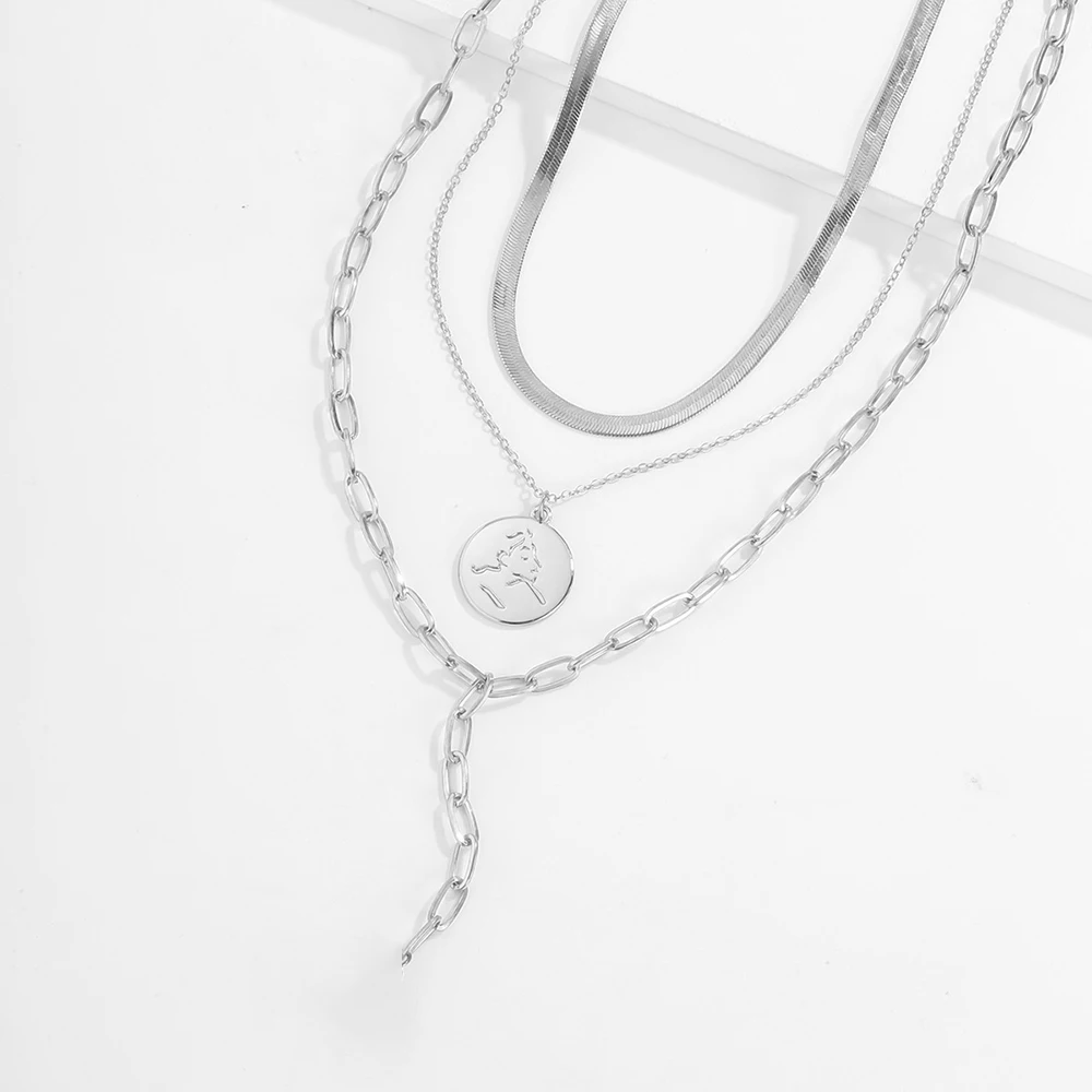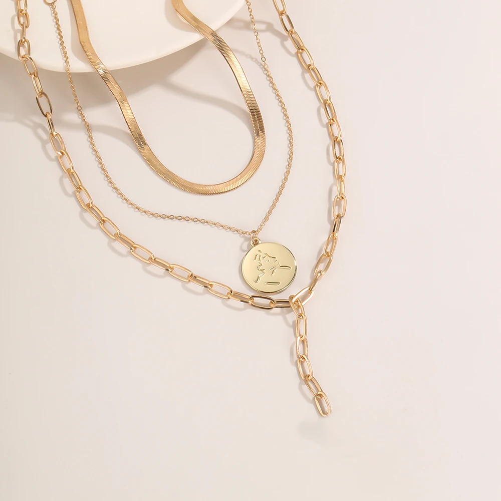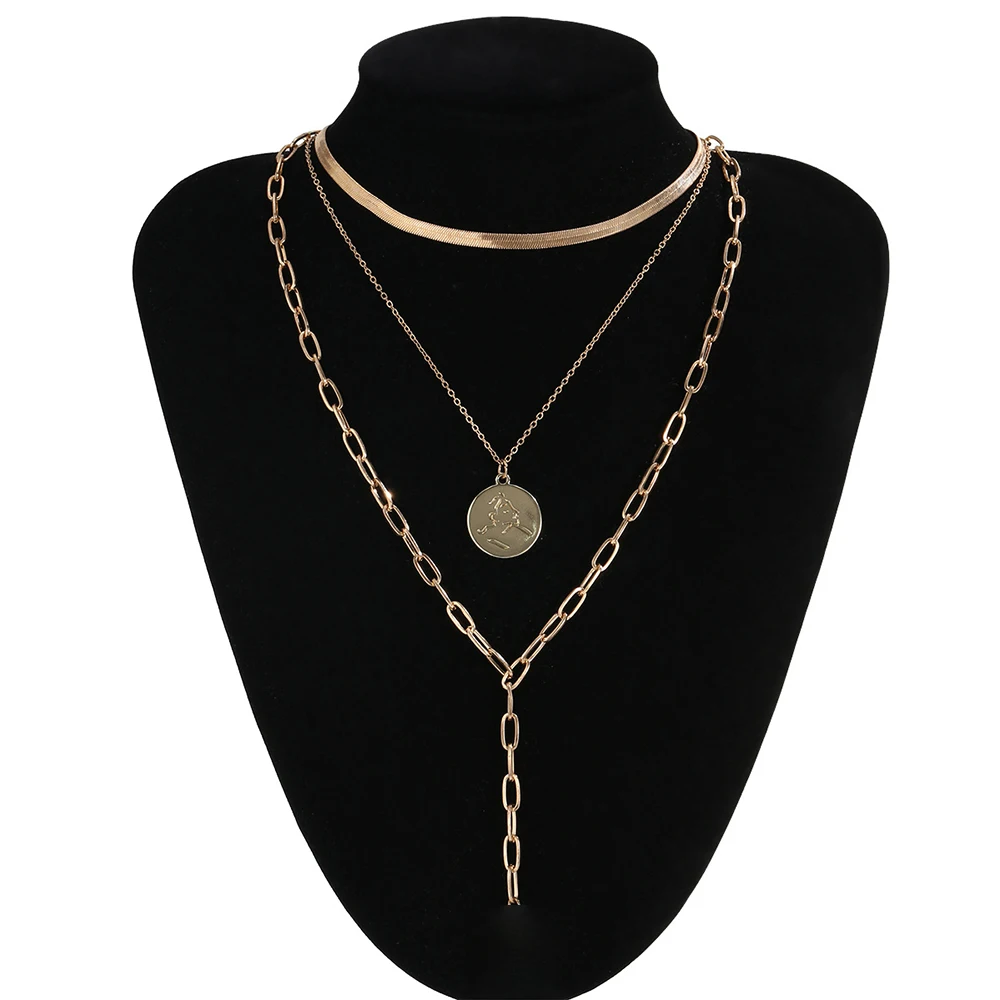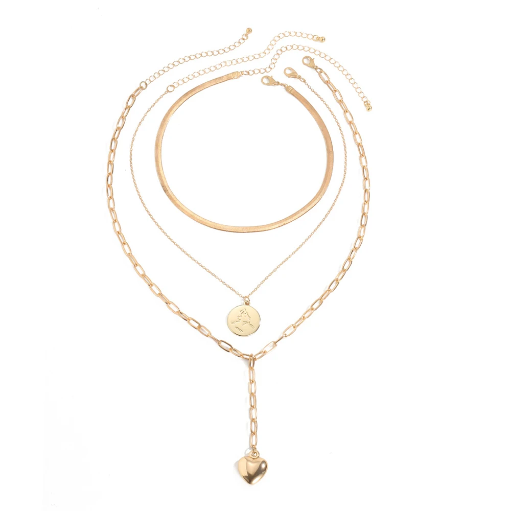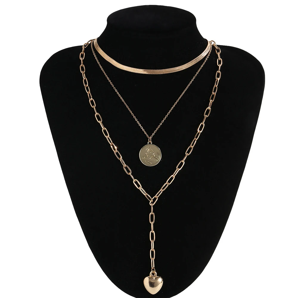 2020 New Snake Chain Chains Necklaces For Women Multilevel Fashion Gold-plate Coin Heart Pendant Female Necklace Jewery