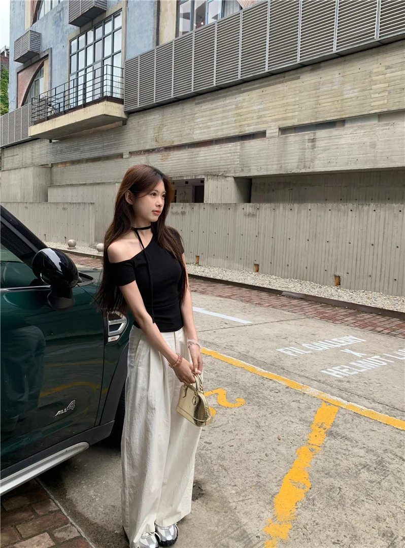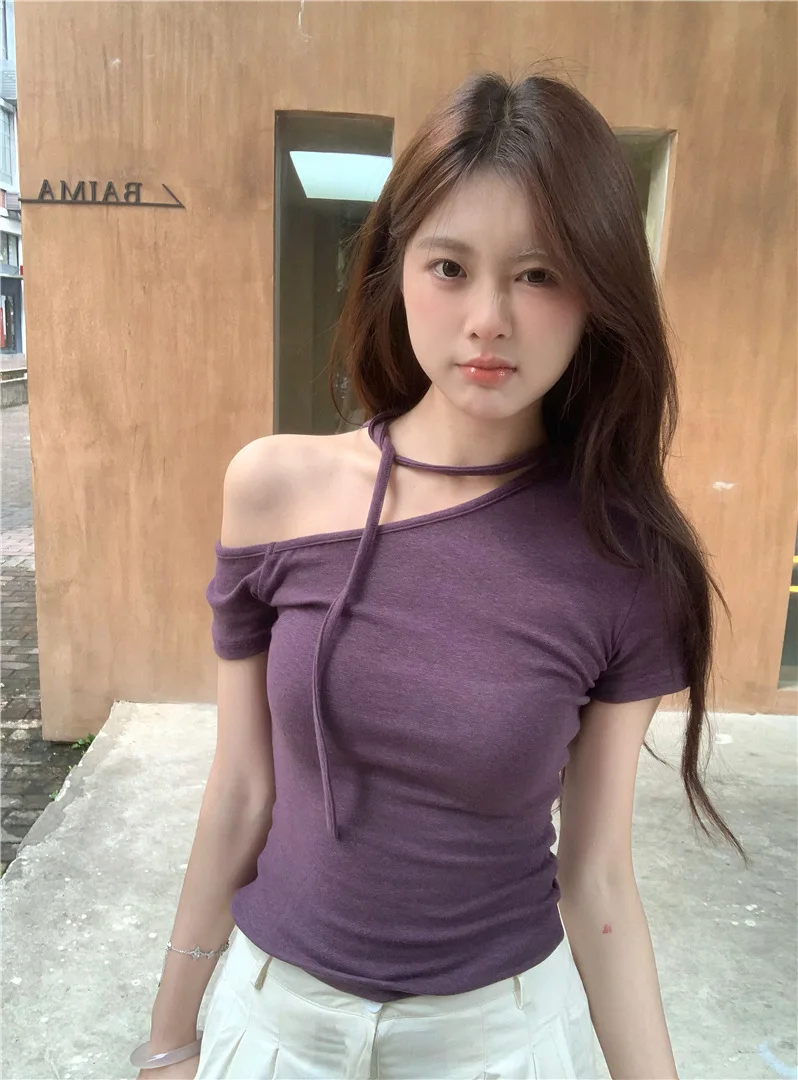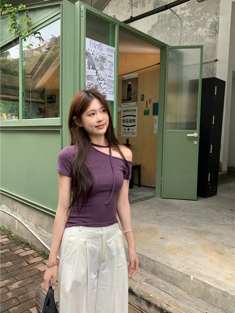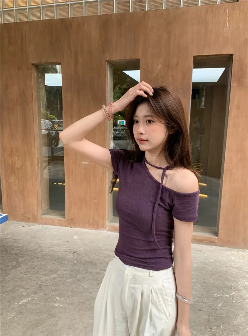 Home/Fashion/Women/Dress/2026 Y2K Summer T Shirt Women Kpop Sexy Off Shoulder Short Sleeved Shirt Tee Shirt Halter Slim Tie Crop Top T-shirt Woman Cloth