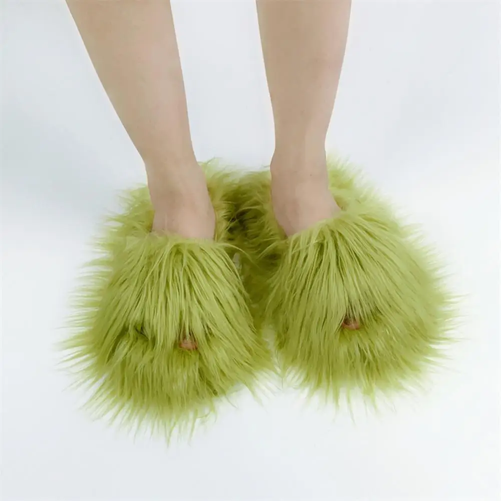 Step out in style with these vibrant Candy Color slippers! Available in a range of striking colors, these slippers add a fun and lively touch to your indoor or outdoor ensemble. Crafted from soft faux fur and featuring a cozy cotton lining, these slippers offer warmth and comfort on chilly winter days.
